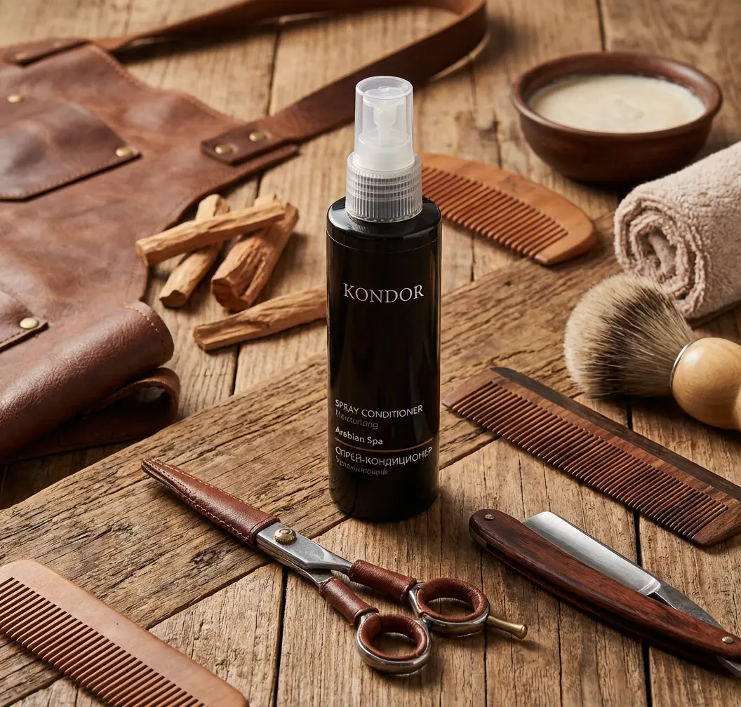 В своем кресле я часто слышу: «Не хочу заморачиваться, дай мне что-то одно, чтобы работало». Мой ответ в 90% случаев — это увлажняющий спрей-кондиционер KONDOR.