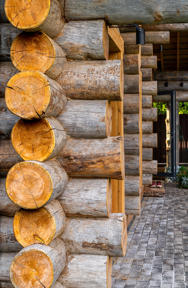 Наконец, нельзя не отметить эстетическую сторону. Кело – любимый материал дизайнеров деревянного зодчества, поскольку каждое бревно уникально. Серебристо-серая патина по всей длине ствола, причудливый рисунок трещин, плавные обводы контуров – всё это создаёт неповторимую фактуру, которой нет у оцилиндрованного бревна или клеёного бруса. Причём внешний вид Кело – это не результат шлифовки или покраски, его не обрабатывают никакими лаками или антисептиками. Природа уже сделала всю работу за строителей: брёвна не требуют шлифования, антисептирования, покраски. Дом из Кело сразу после сборки выглядит как законченный с эстетической точки зрения объект. Натуральный серый цвет древесины прекрасно вписывается в ландшафт, гармонируя с камнем, стеклом, металлом и окружающей природой. За счёт отсутствия химических пропиток постройка полностью экологична, а запах внутри – исключительно природный аромат древесины. Многие владельцы отмечают мягкий хвойный запах, который ощущается в Кело-срубе, особенно если комбинировать его с элементами из кедра. Таким образом, экологичность и красота – ещё два неотъемлемых достоинства Кело, делающие его выбором истинных ценителей натуральных материалов.