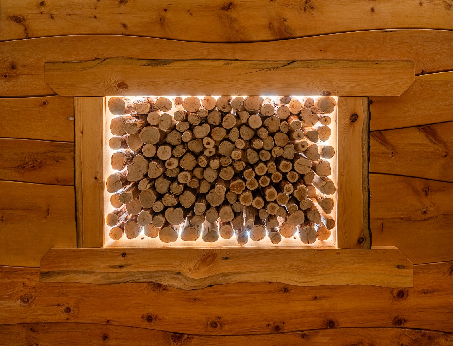 Интерьер Кело-парной с кедровой отделкой. Внутри парного помещения KeloRub сочетает брёвна Кело на стенах и элементы из кедра – полоки, потолок, наличники. Такое решение оправдано: Кело задаёт характер и образ бани, а кедр дополняет его комфортом, тёплой текстурой и лечебным ароматом. Кедровые полки и подспинники приятны на ощупь и не обжигают кожу при высоких температурах, потолок из кедра обеспечивает дополнительную изоляцию и традиционный вид, а скрытые детали (короба для подсветки, вентиляции) также оформляются кедровой древесиной. Кело + кедр – это идеальный тандем для парной: стены сохраняют аутентичный облик северного сруба, а все поверхности, с которыми контактирует человек, дарят комфорт и целебный запах сибирского кедра. Такая Кело-парная не только красива, но и функциональна: она долго держит пар и радушно принимает гостей в атмосферу настоящей русской бани.
