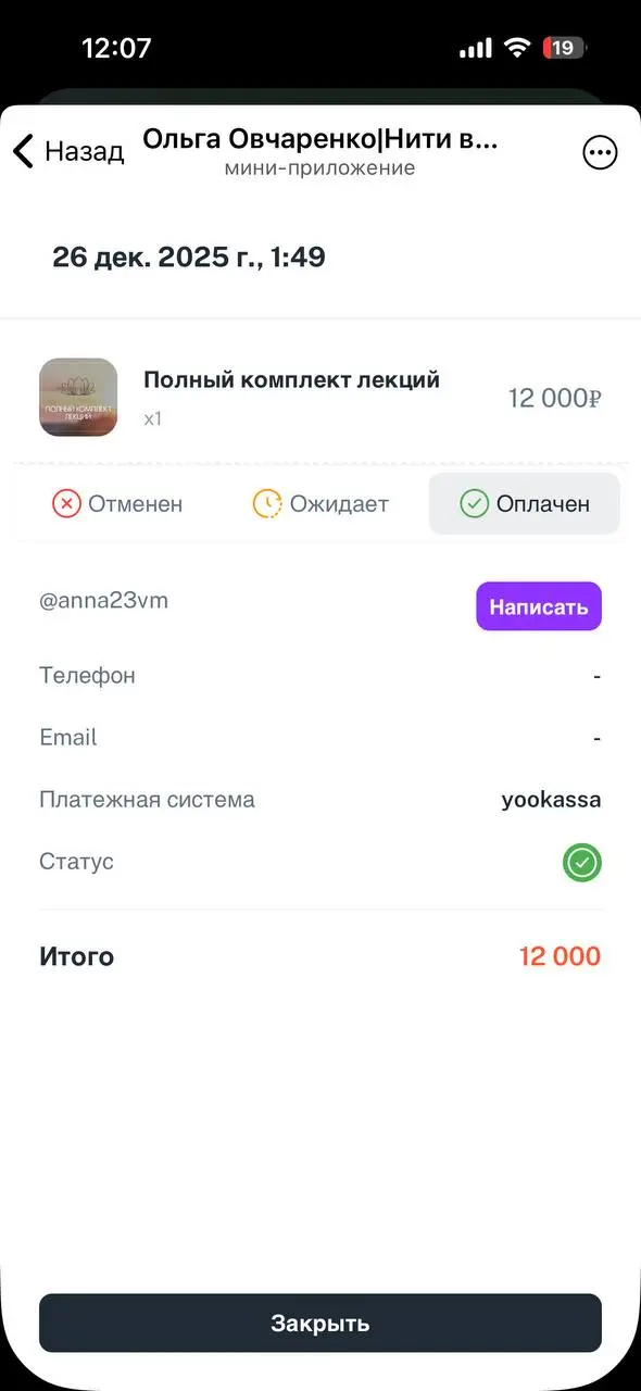 Эксперт получил:— единое пространство проекта в Telegram— прозрачную аналитику по поведению пользователей и продажам— защищённый контент— понятный и бесшовный путь клиента