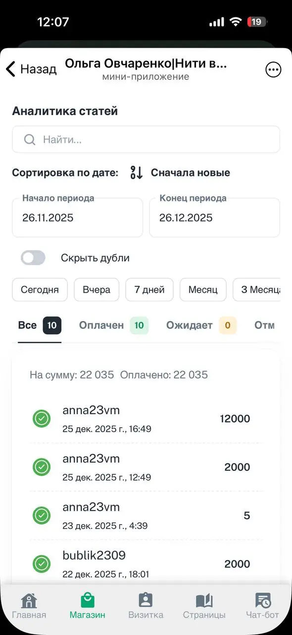 Фиксация всей аудиторииКаждый, кто открыл Mini App, попадает в базу. Даже если он ничего не купил.