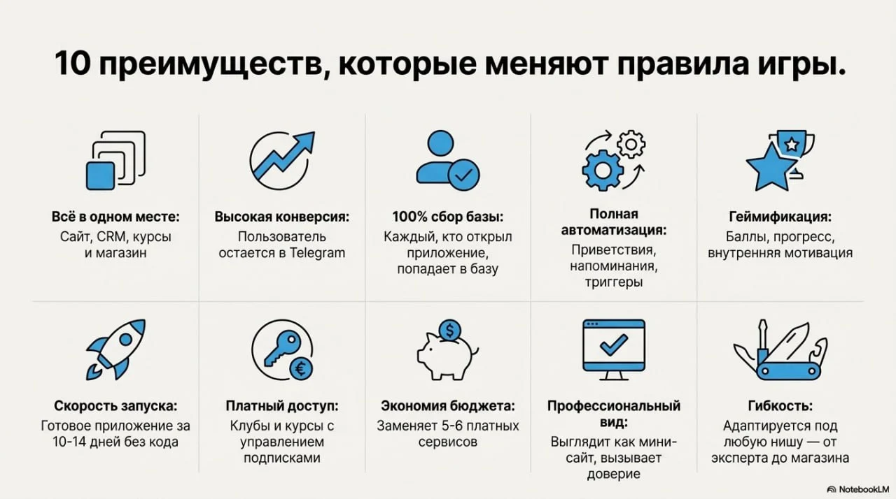 Профессиональная упаковка экспертизыMini App воспринимается как полноценный цифровой продукт, а не как «очередной бот».В 2026 году выигрывает не тот, кто продаёт громче, а тот, кто выстраивает систему.